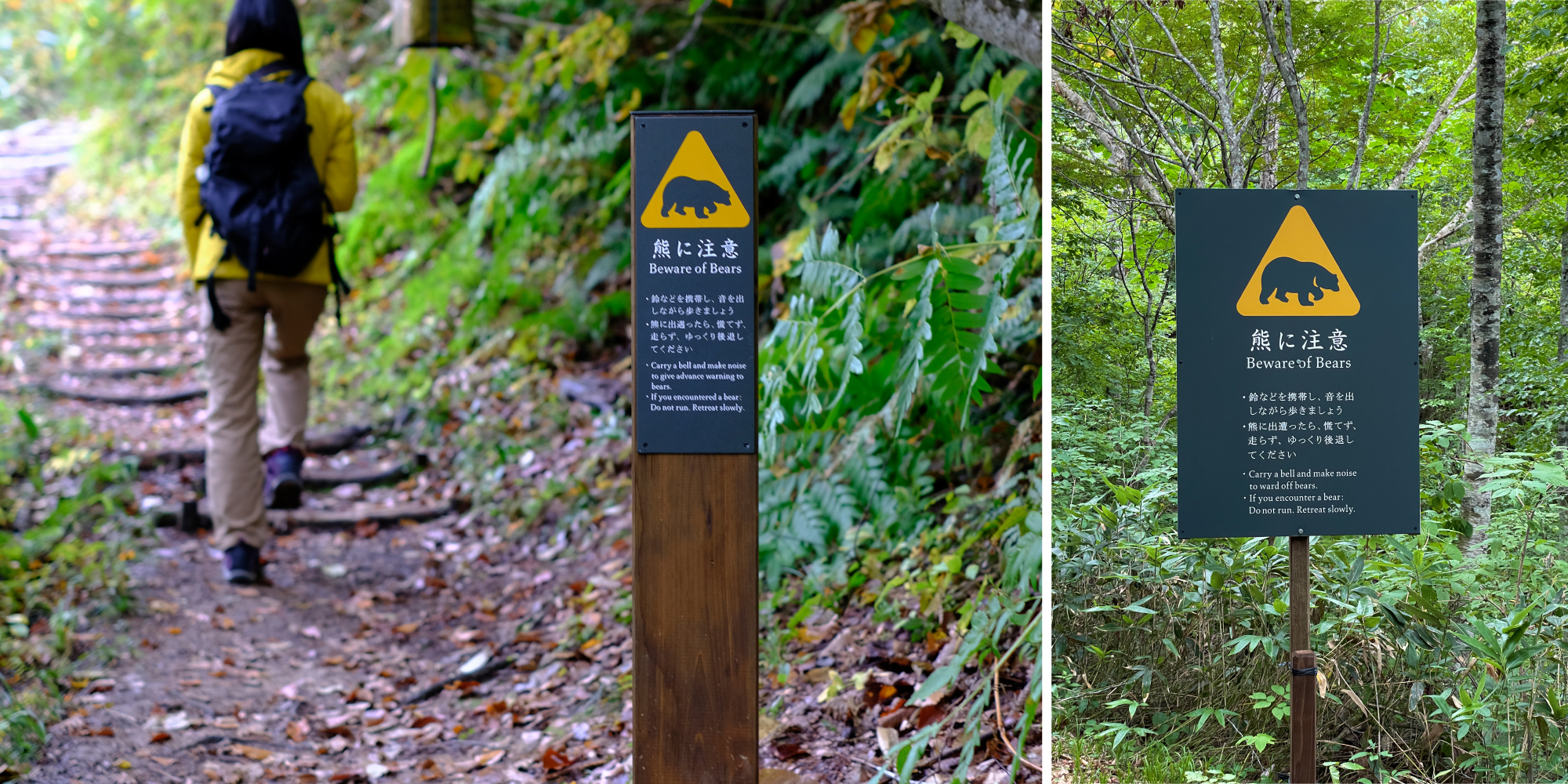 In addition, warning signs such as “Beware of Bears,” along with signage conveying the ingenuity of forest wardens, are distributed throughout the site to communicate the meaning of entering deep nature and the relationship between humans and the forest. The signage employs traditional Hida joinery, allowing it to be modularized for manual transport and on-site assembly without heavy machinery. This approach reduces environmental impact while enabling sustainable maintenance through component-level replacement. Furthermore, the application of wood vinegar, a byproduct of local charcoal production, helps prevent weathering and animal damage while maintaining harmony with the surrounding landscape. Developed through collaboration between the public and private sectors, the project incorporates a system for passing on local wood culture and craftsmanship. It positions signage not merely as a means of information delivery, but as a medium that connects people, nature, and regional culture.